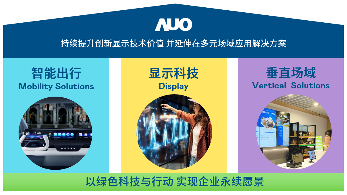 我们持续推动「双轴转型」,在精进显示技术附加价值(Go Premium),与深化垂直市场应用(Go Vertical)的策略下,对应AG百家乐的优势竞争力与趋势,我们奠定显示科技智慧移动垂直场域三大永续营运支柱,在显示技术领域的根基之上,延伸布局多元场域应用解决方案。将先进显示科技助力智慧移动及垂直场域发展,并以绿色科技与行动为实践,在转型之路上贯彻永续经营之愿景。